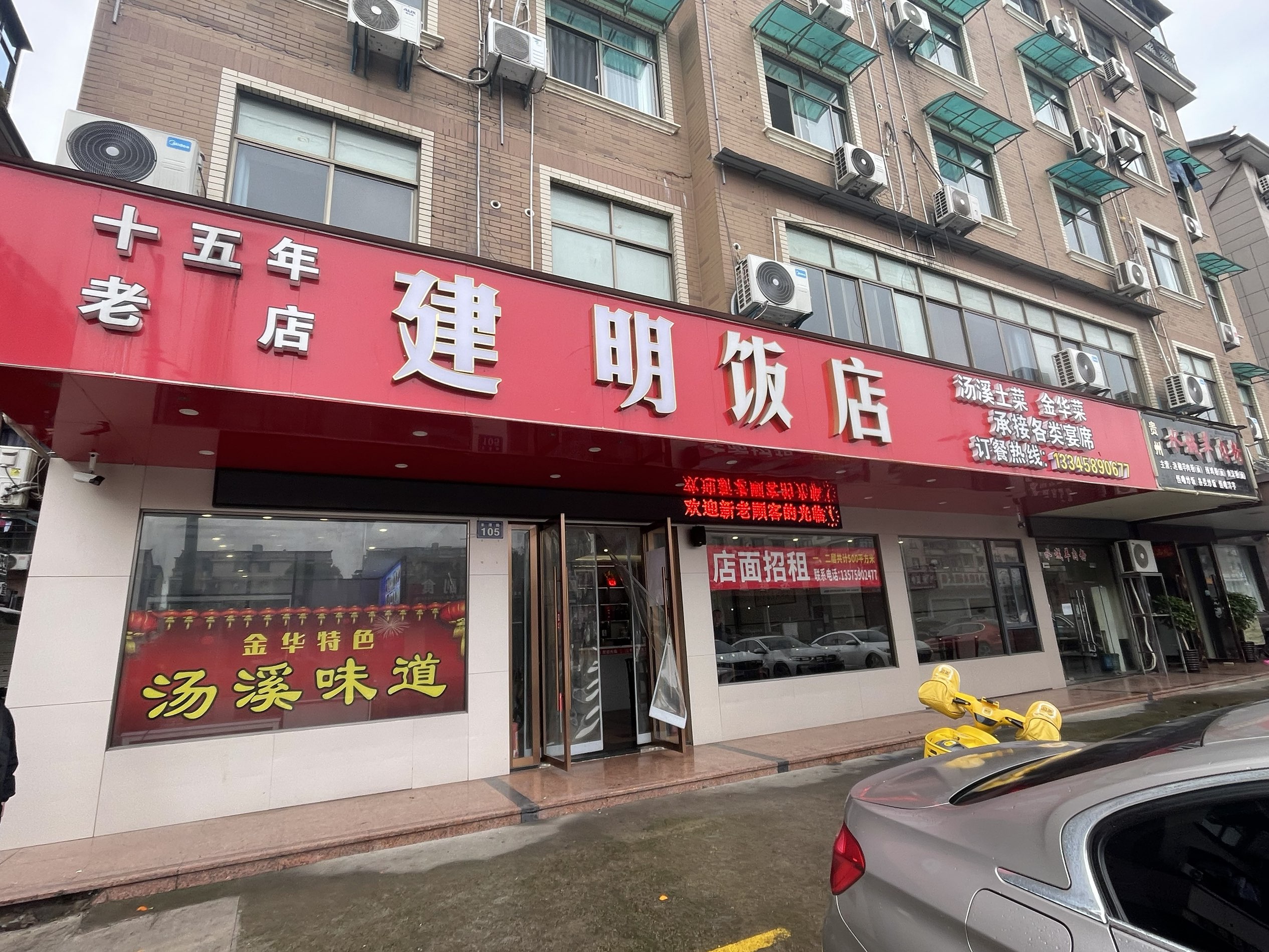 金华江南开发区吕献塘位置好饭店转让,600平一楼大厅二楼10个包厢23333元/月,边上有实验学校,化山小区,吕献塘社区,周边企业众多 ,外来人口足,生意好做,因老板有别的生意要做,管理不过来,诚心转让本店:13575902477