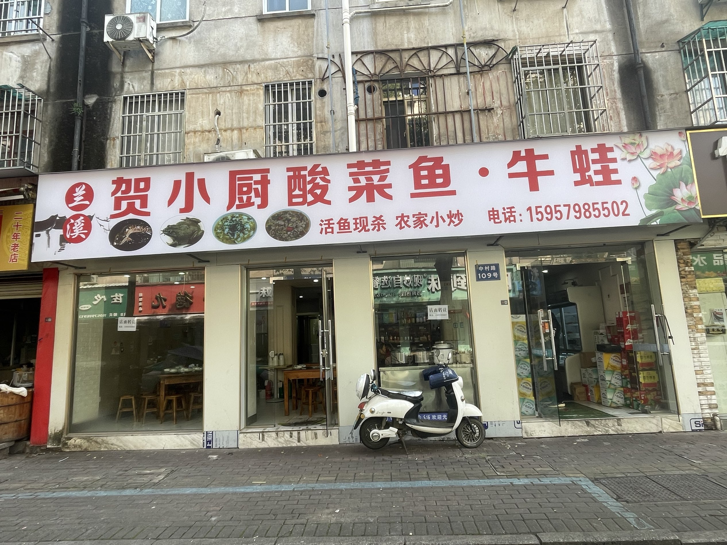 金华江南中村路转角饭店夜宵店转让,2间80平6250元/月(因扩大规模更换大店转让),位于中村路109号(兰溪鸡子馃边上),中村路口就是江南热闹的夜宵餐饮专业街,客源足,欢迎前来考察:13958468801